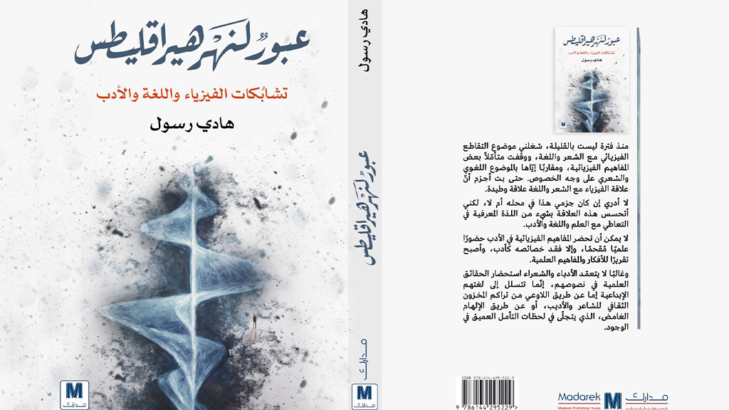 وممّا جاء على غلاف الكتاب: منذ فترة ليست بالقليلة، شغلني موضوع التّقاطع الفيزيائيّ مع الشّعر واللّغة، ووقفت متأمّلاً بعض المفاهيم الفيزيائيّة، ومقاربًا إيّاها بالموضوع اللّغويّ والشّعريّ على وجه الخصوص، حتّى بتّ أجزم أنّ علاقة الفيزياء مع الشّعر واللّغة علاقة وطيدة.