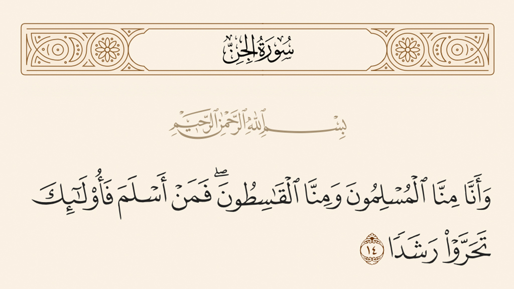 {وَأَنَّا مِنَّا الْمُسْلِمُونَ وَمِنَّا الْقَاسِطُونَ فَمَنْ أَسْلَمَ فَأُولَئِكَ تَحَرَّوْا رَشَدًا} [الجن : 14]. أي وقعوا في حالة معتدلة من جهة الرشد، فالرشد تمييز لا مفعول به، والفعل لازم، ويؤيّد هذا المعنى وقوع هذه الكلمة في مقابل القاسطين أي المتجاوزين عن التوسّط والعدالة.